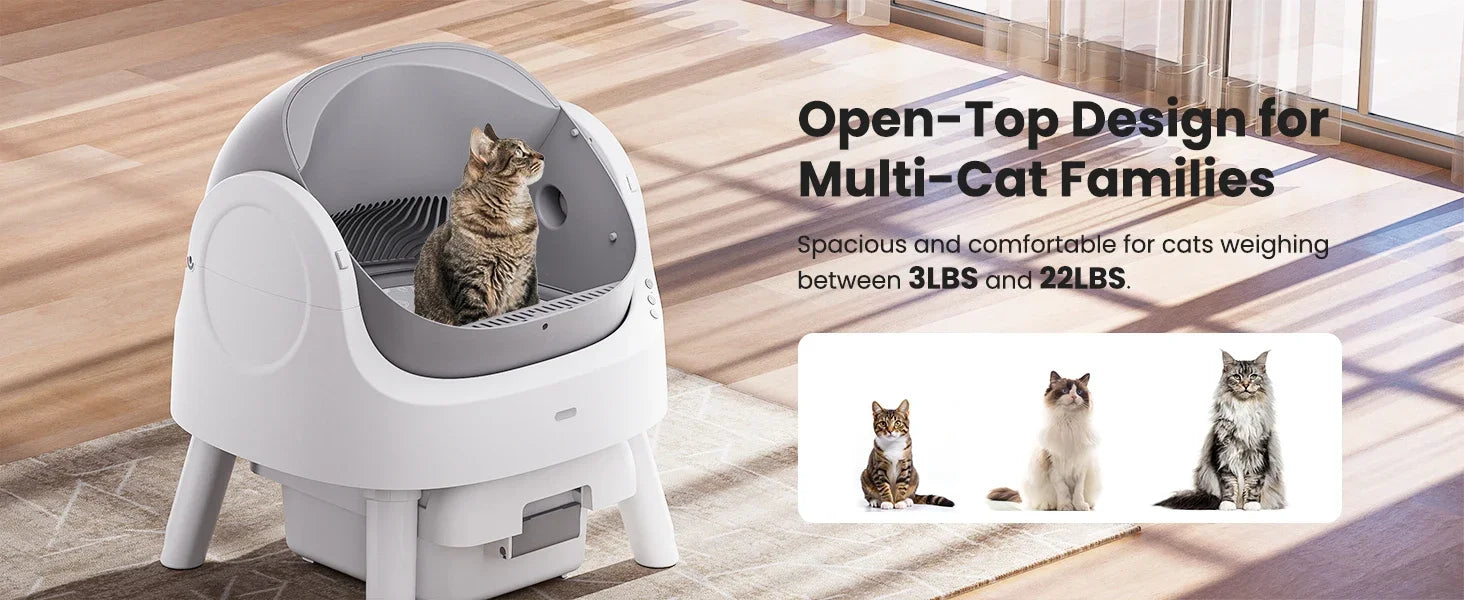 Open-Top Design: Encourages natural litter box use while preventing odor buildup and keeping things airy.